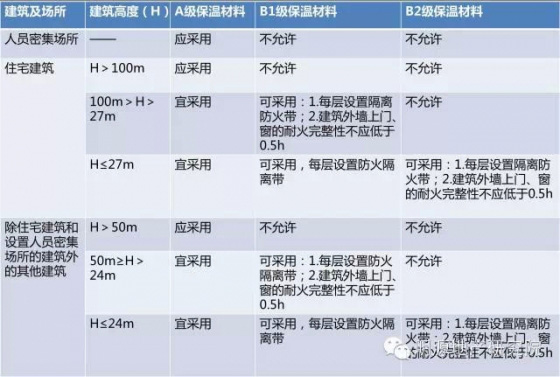 注釋:A級材料屬于不燃材料,火災危險性很低,不會導致火焰蔓延,因此在建筑內外保溫系統(tǒng)中,盡量選用A級保溫材料。