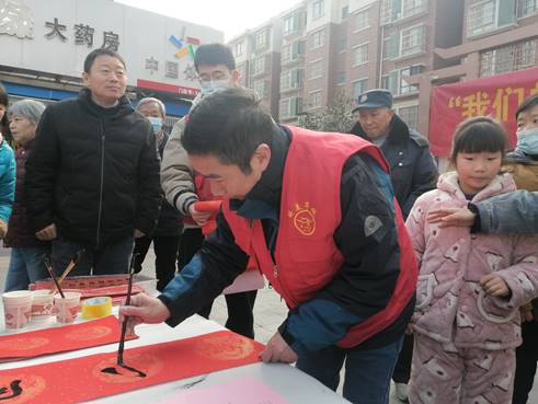 活動現(xiàn)場,志愿者們潑墨揮毫,一幅幅吉祥喜慶的春聯(lián),為即將到來的虎年新春帶來了別樣的溫暖。志愿者們有求必應(yīng),將寫好的福字、春聯(lián)送給社區(qū)居民,為他們送去虎年祝福。整個活動現(xiàn)場充滿歡樂祥和的氣氛。